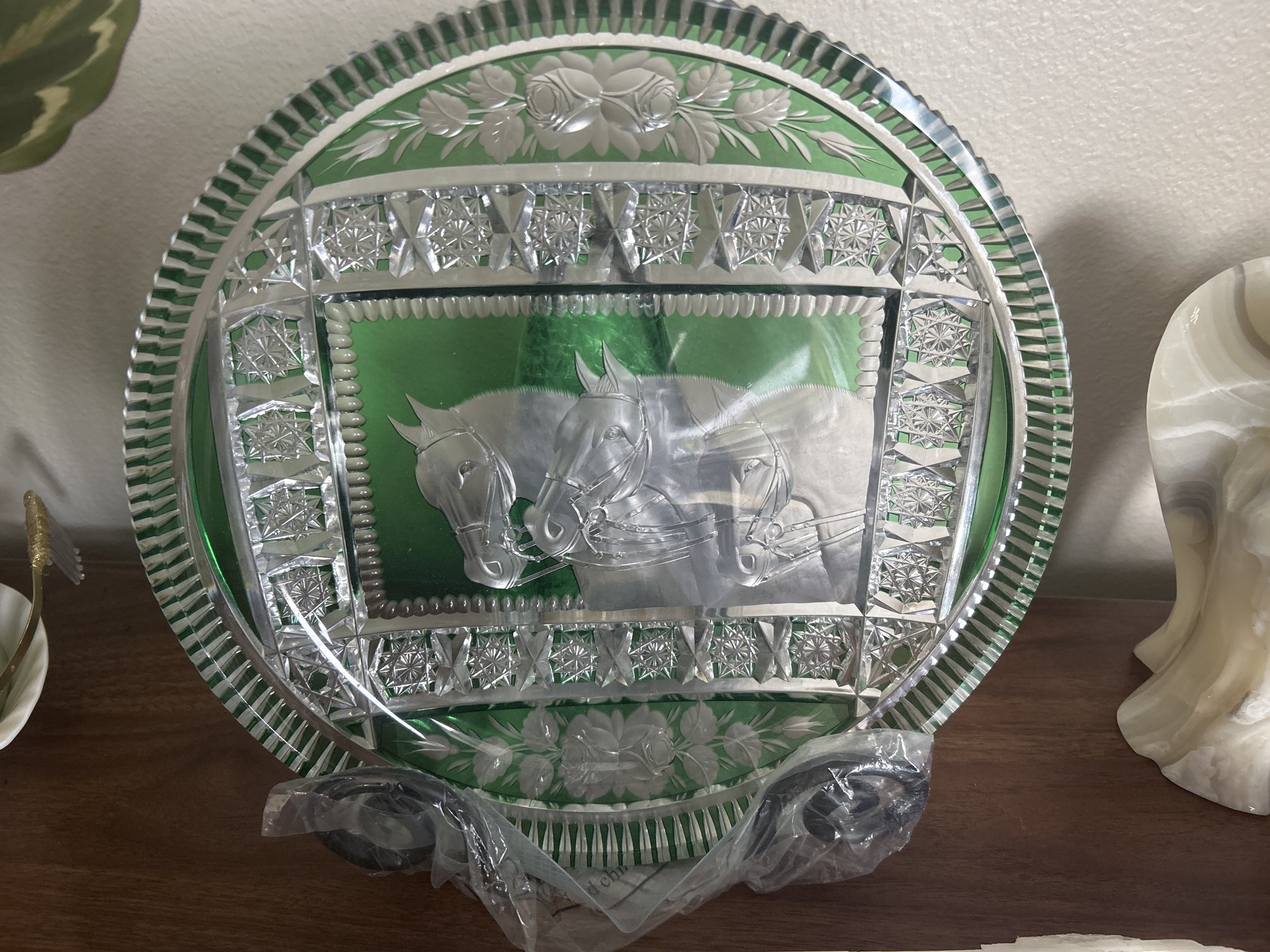 Emerald Green Cased-to-Clear Cut Crystal Equestrian Plate