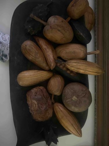 Vintage Hand-Carved Hardwood Fruit Set and Trough Bowl