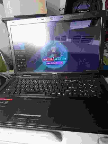 This is a vintage MSI gaming laptop, likely from the early-to-mid 2010s, featuring a distinctive heavy-duty black plastic chassis with a brushed metal-effect finish on the palm rest area. The device is equipped with a full-sized chiclet-style keyboard including a dedicated numeric keypad, situated below a row of capacitive touch hotkeys and a central power button. The MSI logo is clearly visible on the bottom bezel of the 15.6-inch glossy display. The construction reflects the robust, bulky aesthetic typical of high-performance laptops of its era, intended for gaming or workstation use. Notable features include a multi-touch trackpad with dedicated left and right click buttons and a series of status indicator LEDs along the front edge. Regarding condition, the unit appears functional as it is powered on and displaying a 'Roblox' game interface, though significant wear is visible on the palm rest and keys, with noticeable dust accumulation and potential superficial scratching on the plastic casing. No major structural cracks or screen defects are immediately apparent in the image. This model likely belongs to MSI's Classic (CX) or General Purpose/Gaming (GP/GE) legacy lines, characterized by their diverse port offerings and upgradeable internal components compared to modern ultra-thins.