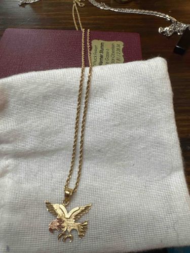 Solid gold rope chain and eagle 18” necklace