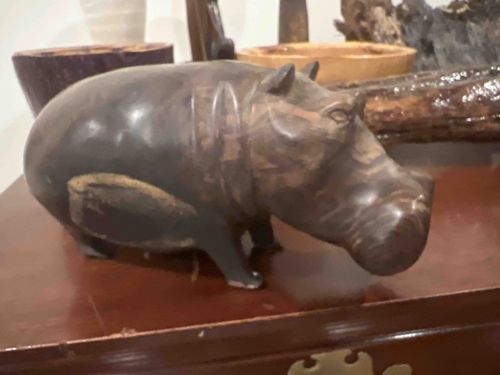Hand-Carved African Ebony Wood Hippopotamus Sculpture