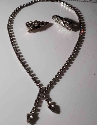 Mid-Century Rhinestone Tennis Necklace and Earrings Parure