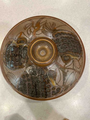 This is a handcrafted studio pottery vessel lid and base, likely a casserole dish or circular storage canister, produced by Maldon Pottery. The piece is constructed from a heavy stoneware clay body, featuring a textured, earthy appearance. The color palette is dominated by muted natural tones of ochre, tan, and dark umber, typical of mid-to-late 20th-century Australian studio pottery. The lid features a central circular knob handle and is elaborately decorated with a sgraffito or wax-resist technique depicting abstract organic motifs that resemble sea life or scales. The textured glaze application is uneven by design, showcasing a 'crackle' or 'toadskin' effect in the darker brown quadrants. The 'Maldon Pottery' mark on the bottom identifies this as originating from the Maldon region in Victoria, Australia, likely dating from the 1970s or 1980s. The piece appears to be in excellent vintage condition with no visible cracks or significant chips, retaining a matte-to-semi-gloss patina that highlights the artisanal craftsmanship of the wheel-thrown form.