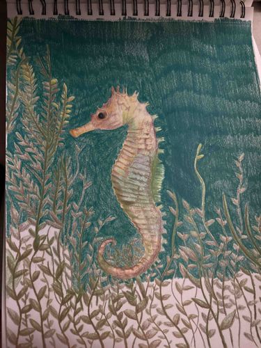 Seahorse Colored Pencil Drawing in Spiral-Bound Sketchbook