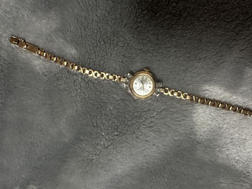 Soviet-made USSR wristwatch, Chaika brand, produced between 1985 and 1990. Made of 585 gold and set with 6 diamonds.