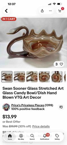 Vintage Sooner Glass Stretched Swan Candy Dish