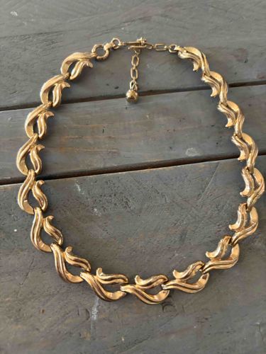 Vintage Gold-Tone Scroll Link Collar Necklace