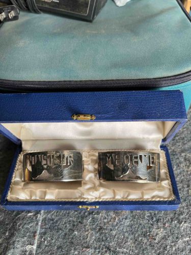 Pair of Art Deco Silver Napkin Rings with Latin Quotations