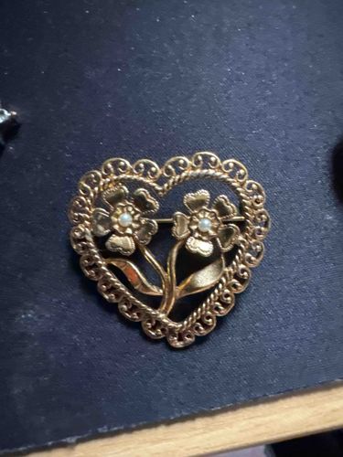 Vintage Gold-Tone Heart and Floral Filigree Brooch