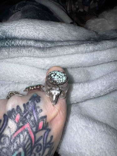 Southwestern Sterling Silver and Matrix Turquoise Bull Skull Ring