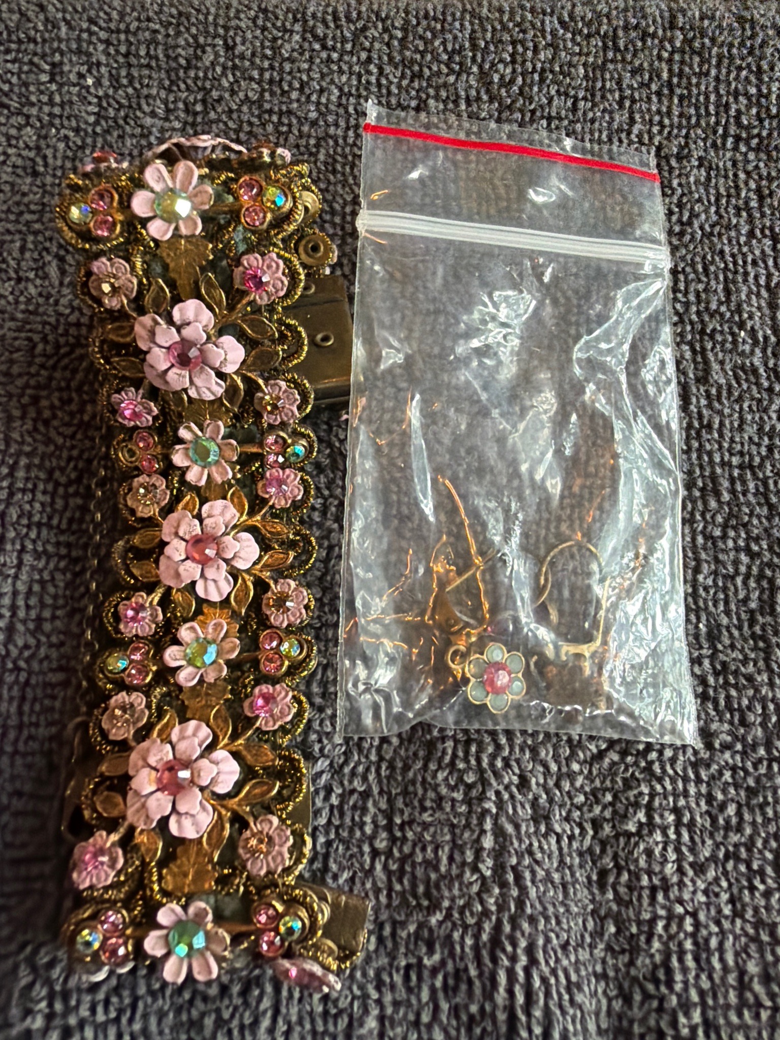 Vintage Floral Enameled Panel Bracelet and Matching Earrings Set