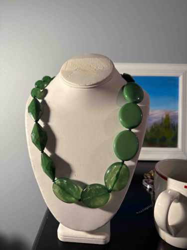 Vintage Green Resin or Celluloid Statement Necklace
