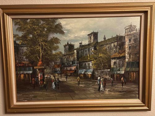 Signed Mid-Century Parisian Street Scene Oil Painting by Oliveri