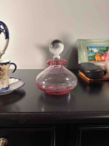 Mid-Century Cranberry Pink Hand-Blown Glass Perfume Bottle