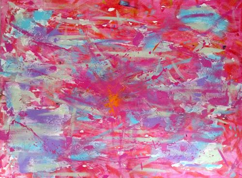 Otiginal acrylic on canvas, 36" x 48" 'Flamingo Flux At The Crack Of Dawn'