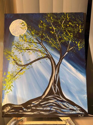 Original Moonlit Tree Acrylic Painting