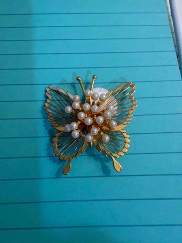 Vintage Gold-Tone Wire-Work Butterfly Brooch with Faux Pearl Cluster