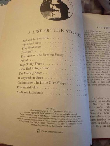 1993 edition of once upon a Time a book of old Time fairy tales, illustrations copyright 1921 from checkered board press in renewal copyright 1949 checkerboard press Inc. all right reserved ISPN is 1–5 6288–2 56–2 X(1/20)