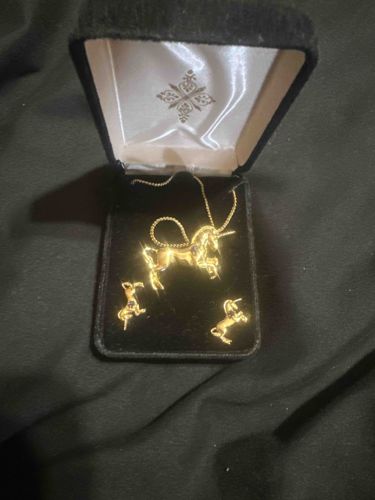 Gold-Tone Unicorn Jewelry Set with Pendant and Earrings