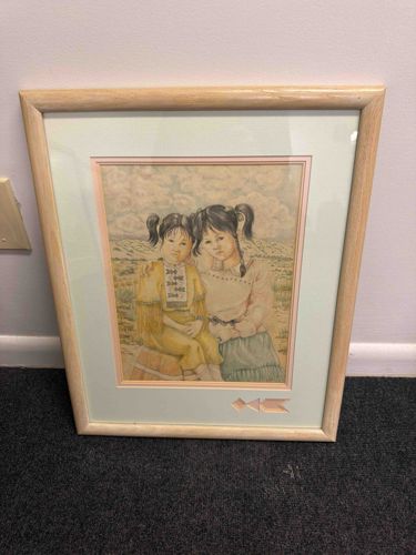Framed Native American Lithograph of Two Girls