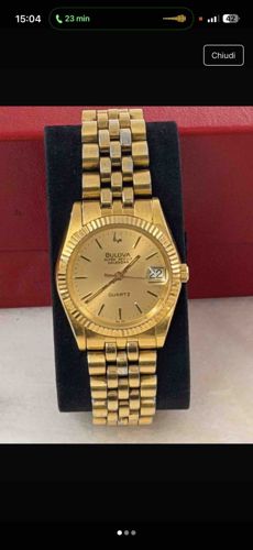 This is a vintage gold-toned Bulova Super Seville Calendar watch, featuring a design heavily influenced by the classic luxury aesthetic of the Rolex Datejust. The timepiece is constructed with a gold-plated stainless steel case and a matching jubilee-style multi-link bracelet. It features a distinctive fluted bezel surrounding a champagne-colored dial. The dial is marked with the Bulova tuning fork logo at 12 o'clock, followed by 'BULOVA', 'SUPER SEVILLE', and 'CALENDAR' text. A date window with a cyclops magnification lens is positioned at 3 o'clock. The watch utilizes a quartz movement, indicated by the 'QUARTZ' text at the bottom of the dial. The condition shows moderate signs of wear consistent with age, including surface scratches on the bracelet and case, and slight fading of the gold plating on high-friction areas of the links. The bracelet appears to have some stretch. Based on the styling and quartz movement, this piece likely dates from the late 1970s to the 1980s. The craftsmanship is typical of Bulova's mid-century output, offering a high-quality alternative to prestige luxury brands of the era.