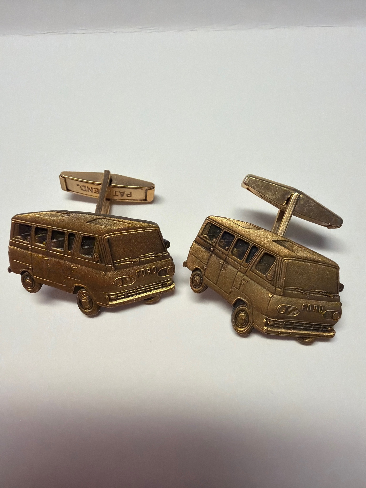 Vintage Gold-Tone Ford Econoline Van Cufflinks
