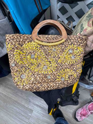 Embellished Woven Straw Tote with Wooden Handles