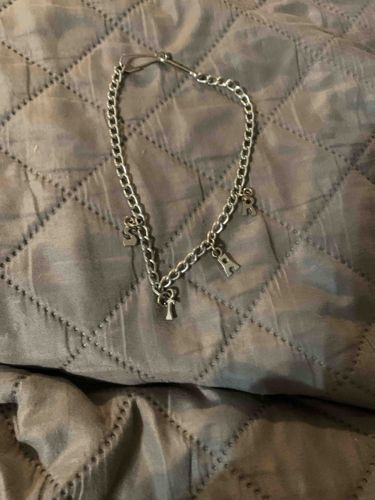 This item is a fashion charm bracelet featuring a silver-tone curb chain construction. The principal aesthetic feature consists of four individual block-letter charms spelling out the word 'STAR.' Each charm is attached via a standard jump ring to the main chain body. The chain demonstrates a uniform link size, characteristic of mass-produced fashion jewelry. The finish appears to be a polished silver-tone coating over a base metal, possibly steel or a zinc alloy, as evidenced by the cool metallic sheen and light reflection. The bracelet uses a basic spring-ring or lobster-style clasp, though the closure mechanism is slightly obscured in the provided image. Regarding condition, there is visible minor tarnishing and surface micro-scratching consistent with previous wear and age. The luster is somewhat muted, suggesting it has been handled frequently. There are no immediate signs of broken links or missing components, though the jump rings appear to be simple, non-soldered types. This style of charm jewelry became particularly popular in the late 20th century through the early 2000s as a form of personalized accessory. The craftsmanship is standard for commercial-grade costume jewelry, lacking high-end jeweler hallmarks or fine metal stamps, which indicates it was likely intended for the affordable retail market rather than as a fine luxury piece.