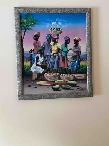 Folk Art Painting of a Haitian Marketplace Scene