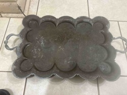 Two-Compartment Embossed Aluminum Serving Tray with Floral Motif